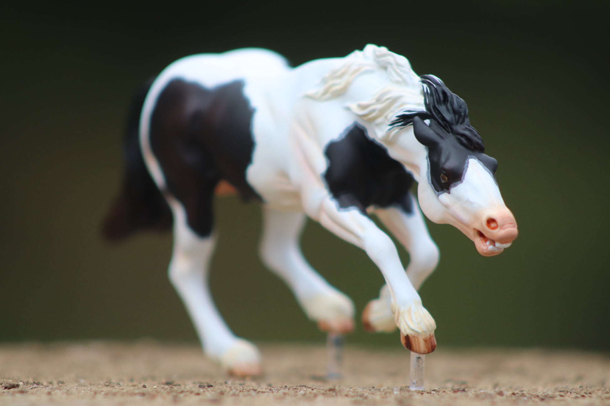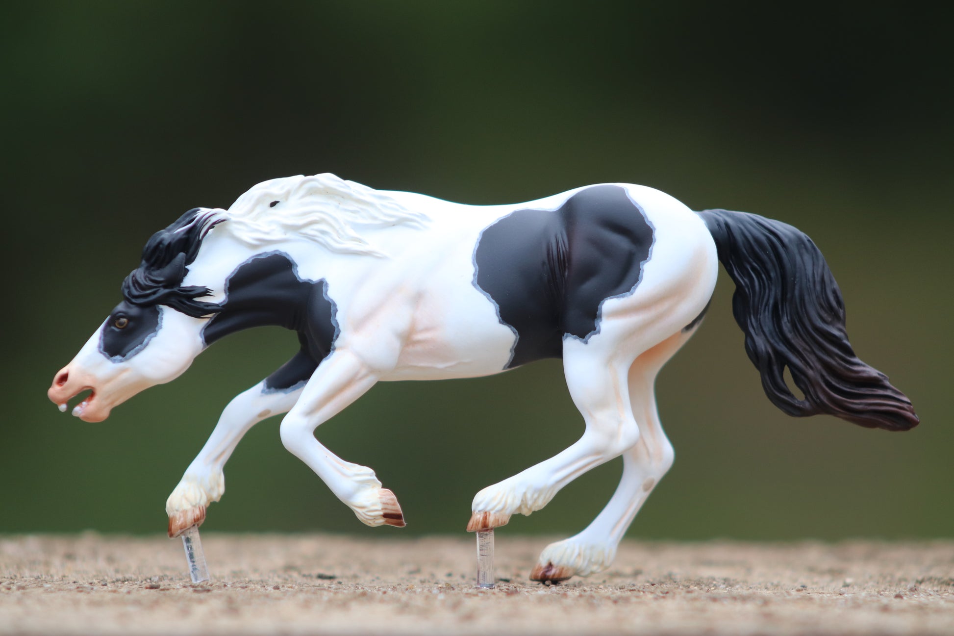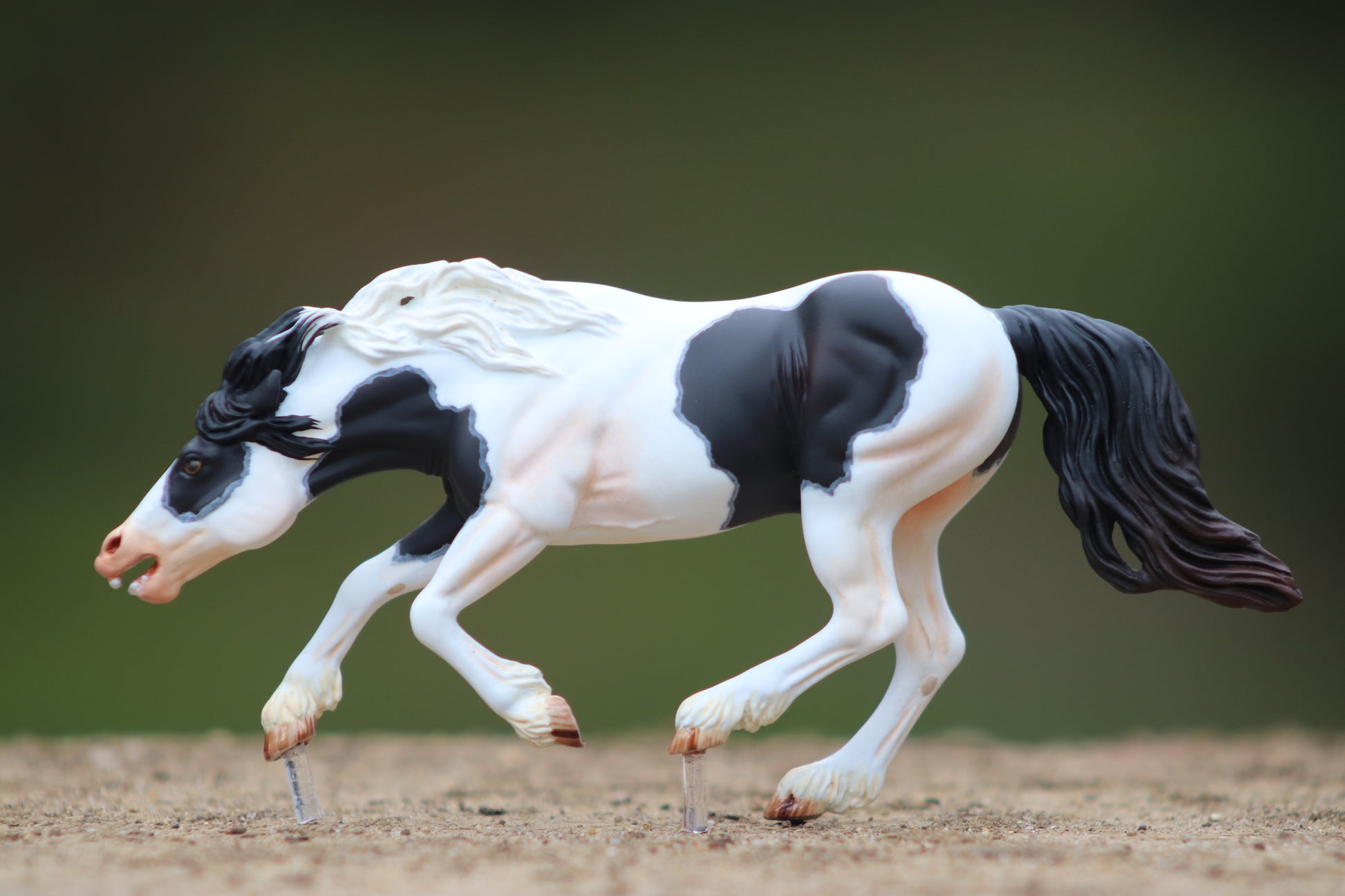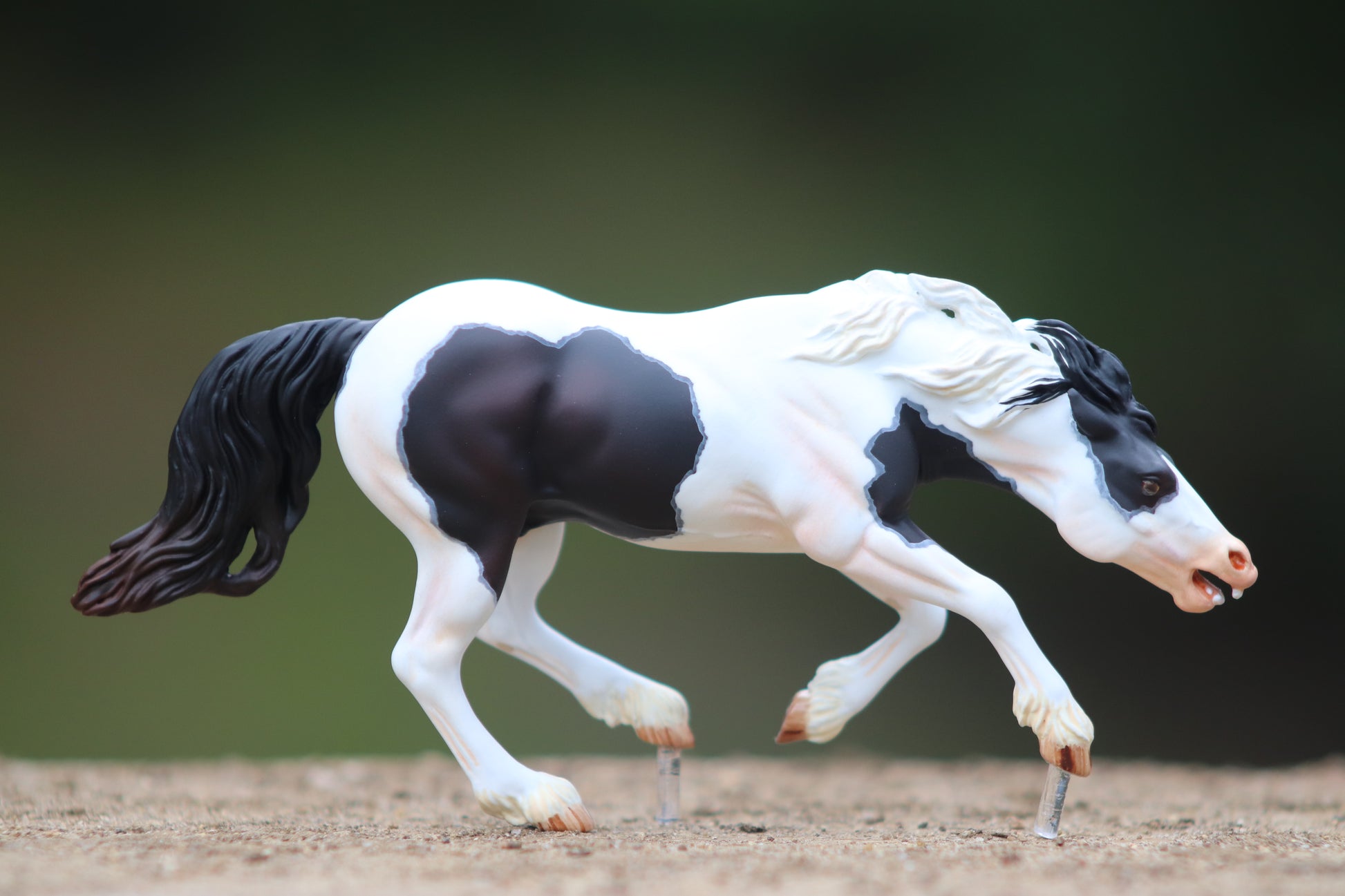 Here is another beautiful painted Venti scale artist resin Bixby. Bixby is a Venti scale resin that is limited to only 30 copies. This one has been painted a black tovero he has nice shading with brown highlights in his tail and lot's of pinking throughout his white areas. His little teeth are even painted! He is highly detailed with glossed eyes and hooves. I don't guarantee LSQ, but personally see no flaws that would make him un-showable.
