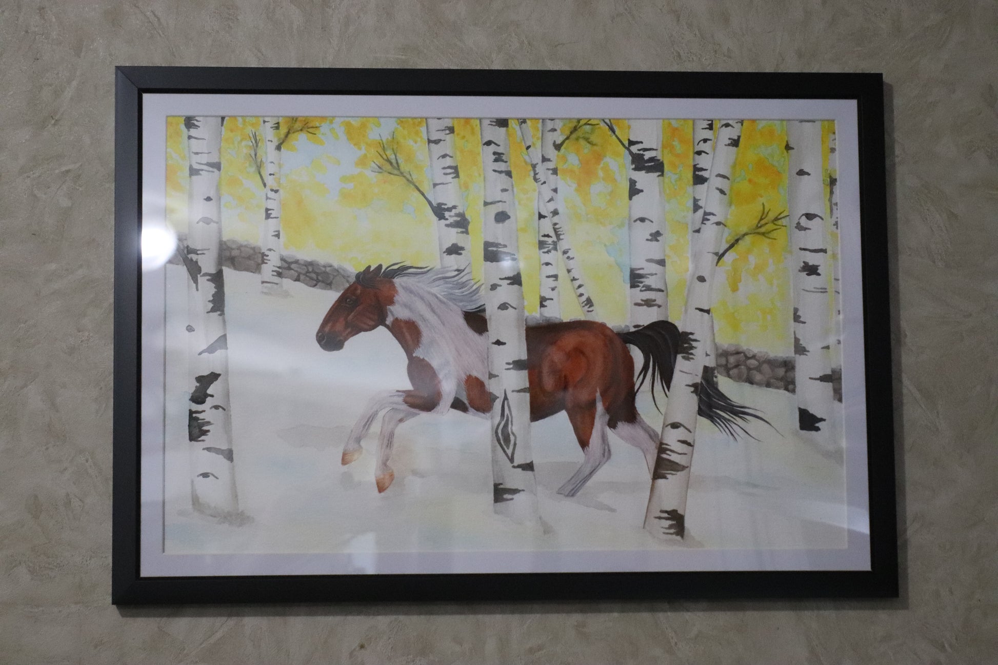 This is a one of a kind painting, it is not a print. It is framed and matted.