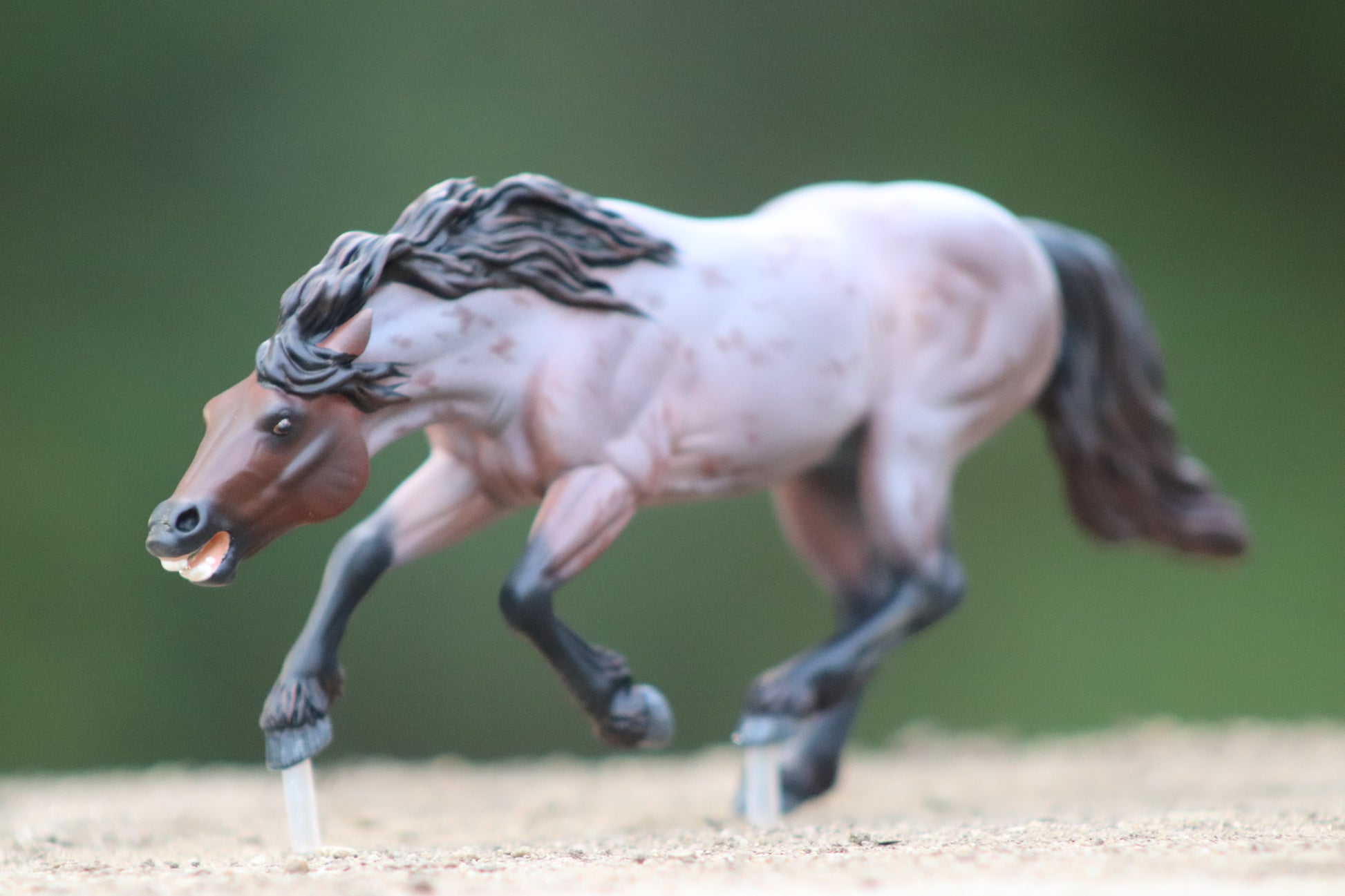 Here is another beautiful painted Venti scale artist resin Bixby. Bixby is a Venti scale resin that is limited to only 30 copies. This one has been painted a beautiful bay roan with lots of corn spots. He is highly detailed with glossed eyes and hooves.